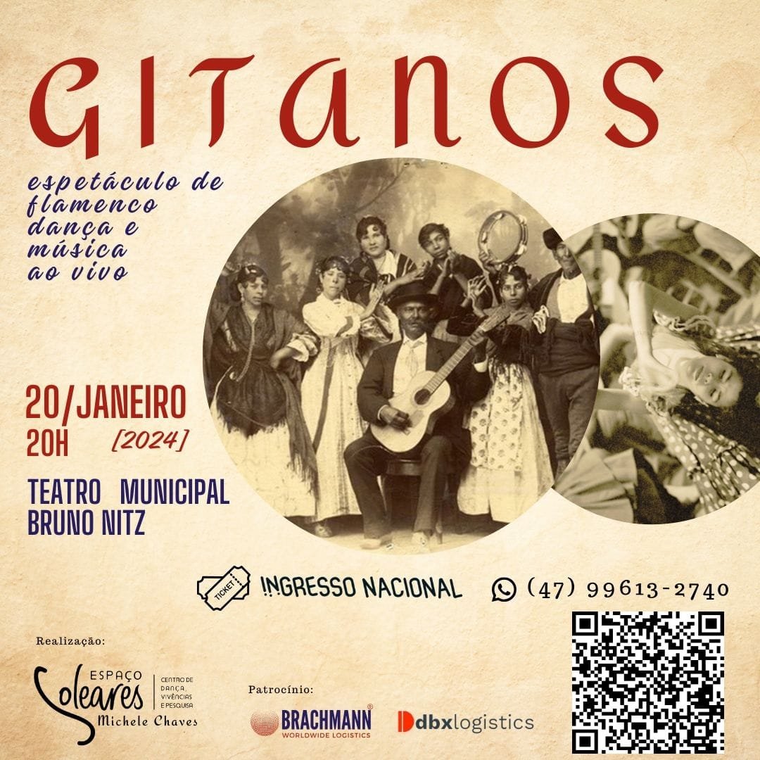 Com música e dança, o espetáculo de flamenco “Gitanos” será apresentado no Teatro Municipal Bruno Nitz, em Balneário Camboriú, neste sábado (20), às 20h. Os ingressos estão à venda pelo site https://www.ingressonacional.com.br. O espetáculo tem o formato dança-teatro e retrata a história dos povos ciganos. “Gitanos” une arte e educação e é promovido pelo Espaço Soleares […]