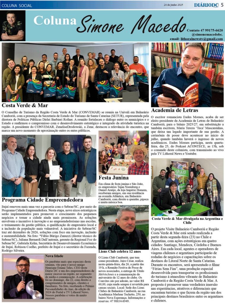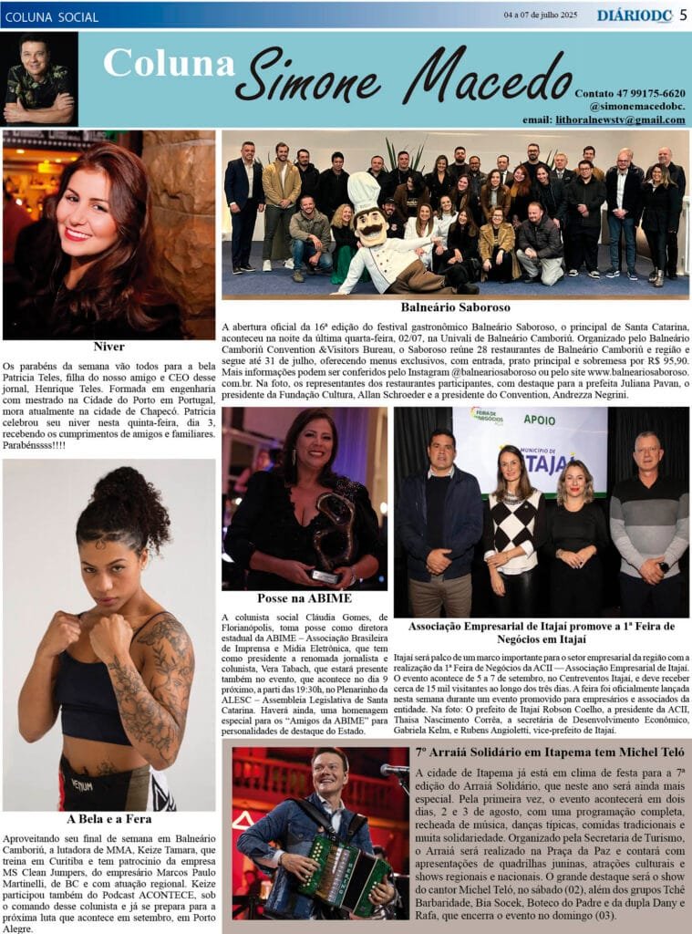 Coluna Social Simone Macedo, jornal Diário DC – 4 a 7 de julho 25