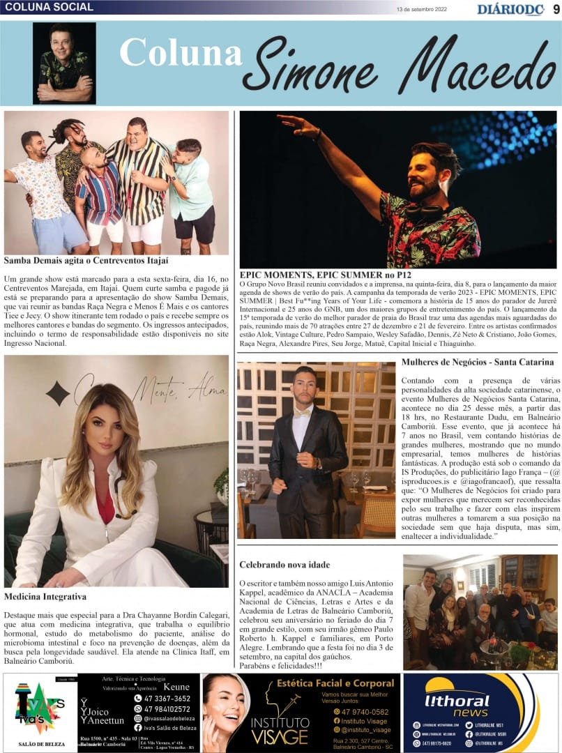 Coluna Social Simone Macedo – Jornal Diário DC – 14 setembro22