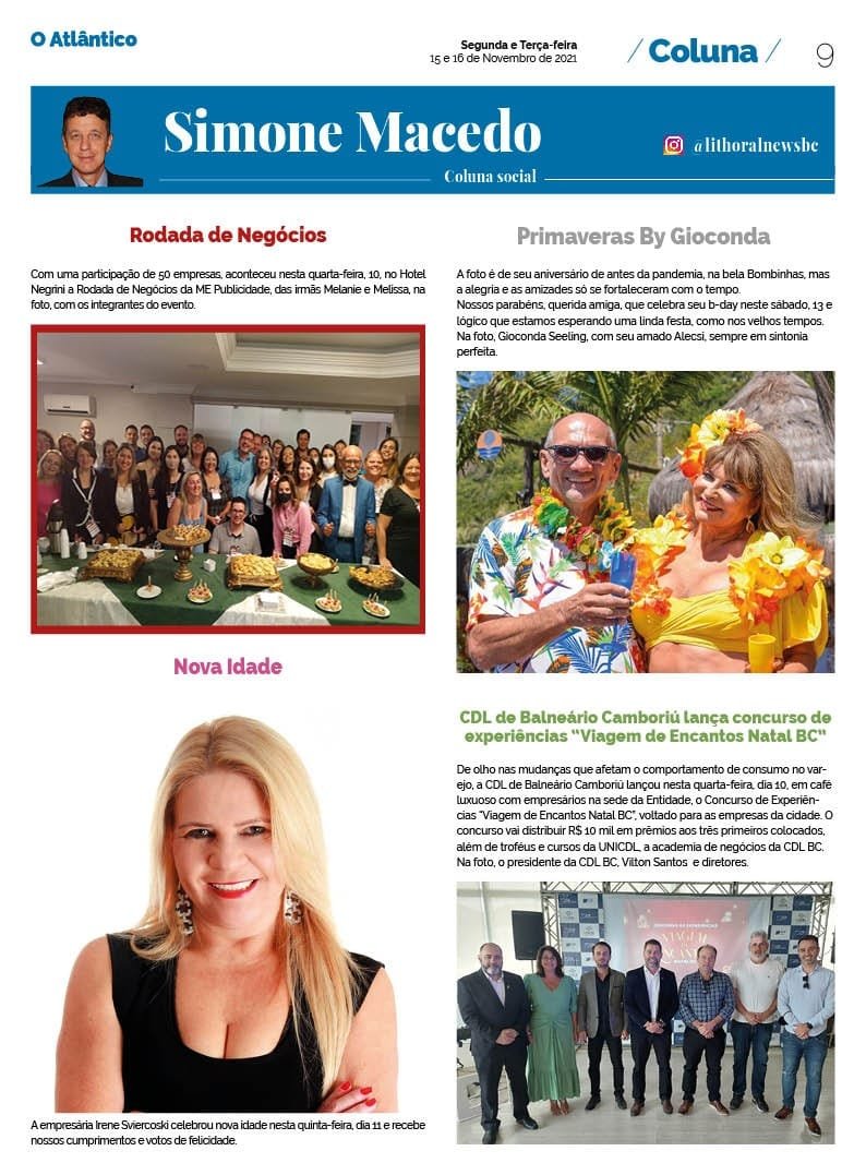 Coluna Simone Macedo – Jornal O Atlântico – 17 a 19 de novembro/21