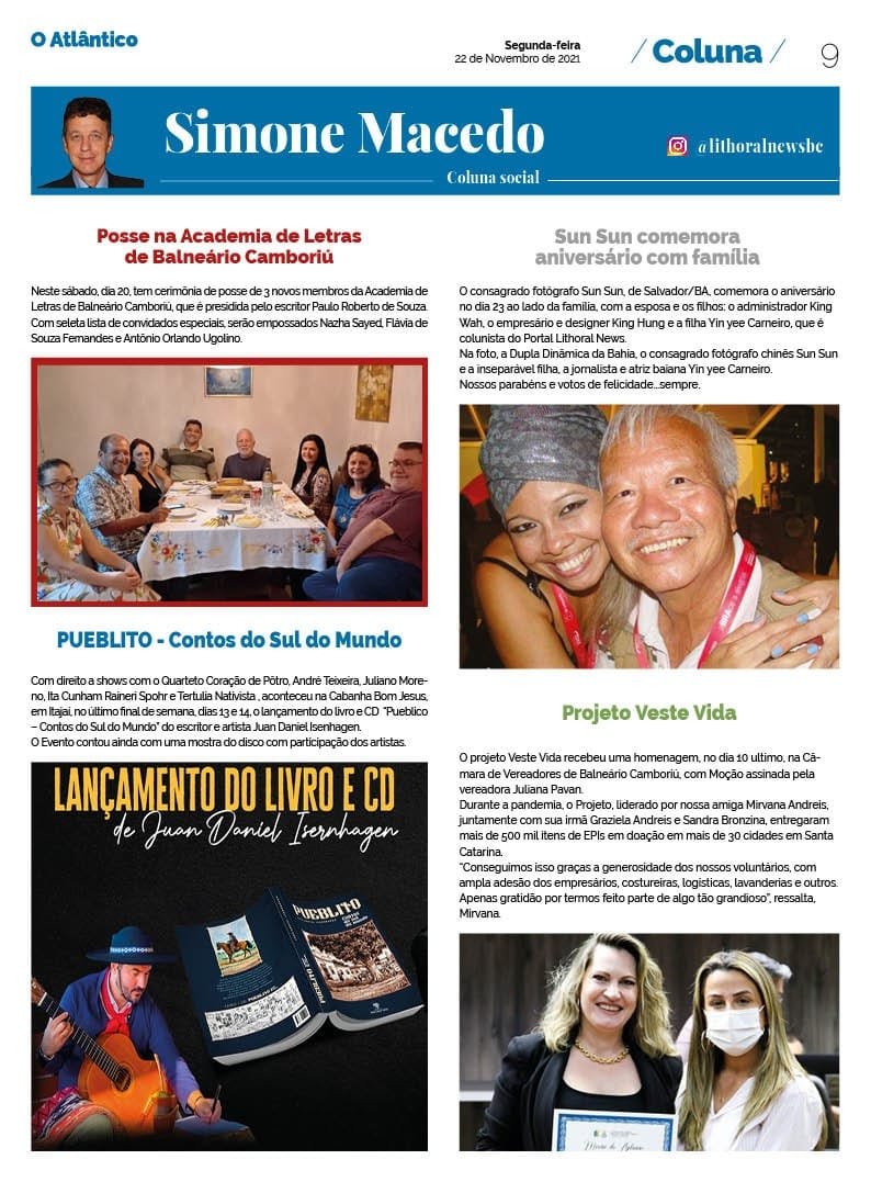 Coluna Simone Macedo – Jornal O Atlântico – 22 de novembro/21