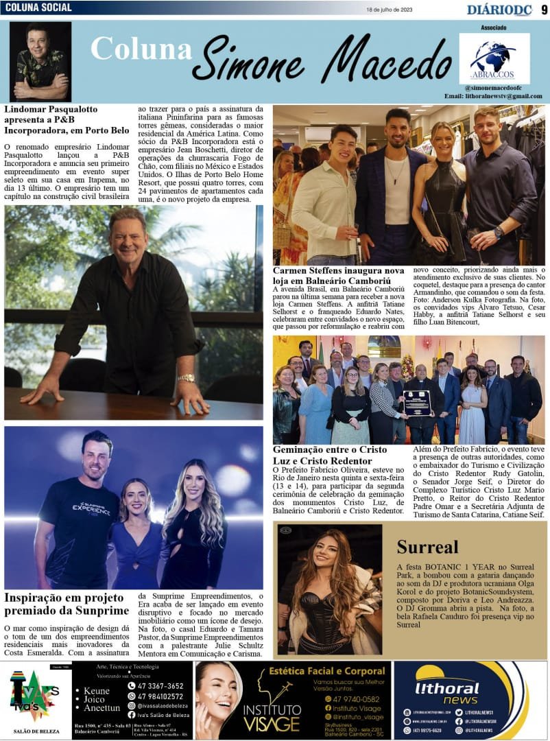 Coluna Social Simone Macedo – jornal Diário DC – 18 julho23