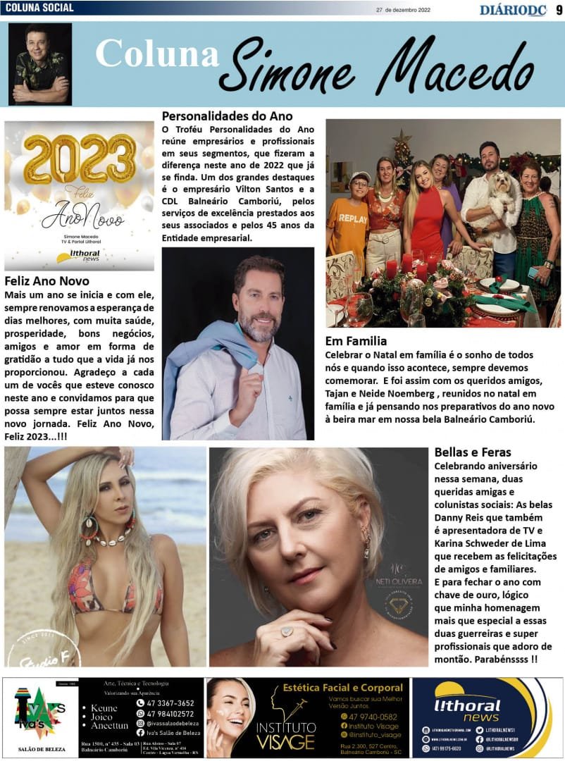 Coluna Social Simone Macedo – jornal Diário DC – 30 dez22
