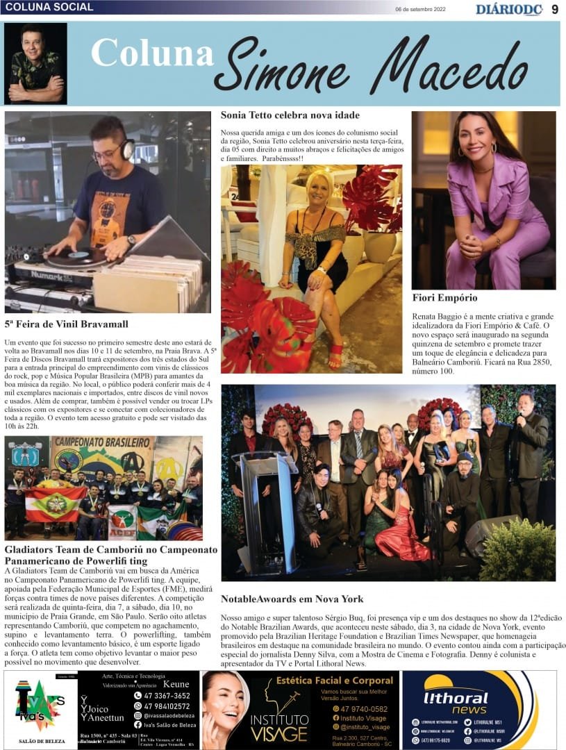 Coluna Social Simone Macedo – Jornal Diário DC – 6 setembro22