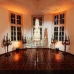 Um dos grandes destaques foi o imponente bolo de seis andares, inspirado nos sofisticados vintage cakes, elaborado por Tábata de Oliveira, da Bolico. Para completar a atmosfera mágica, os personagens da KL Produções enriqueceram os ambientes com sua arte inconfundível. O momento apoteótico veio com Deborah Goes, que emocionou a todos ao cantar sobre a icônica lareira (peça única no mundo) eternizando a noite com sua voz.