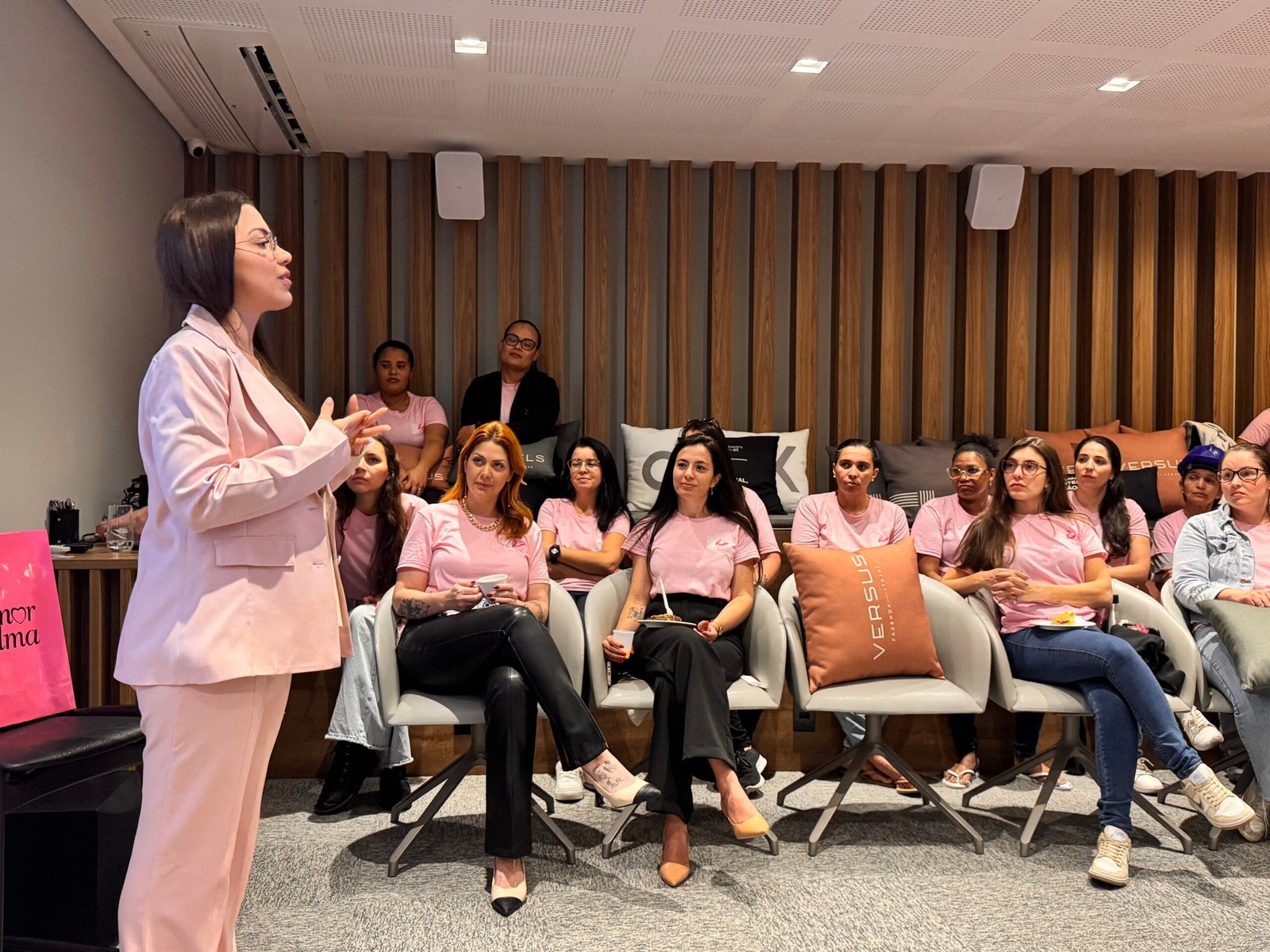 No caso da Construtora CK, a conscientização alusiva à campanha Outubro Rosa já faz parte da cultura empresarial. A empresa realiza, anualmente, uma palestra envolvendo especialistas com objetivo de compartilhar conhecimento e incentivar as suas colaboradoras a se cuidarem e a realizarem exames preventivos. A ação deste ano ocorreu na quarta-feira (15) e reuniu mais de 50 mulheres de diferentes setores. “Acho de extrema importância essas ações para levar conscientização e trazer à luz um assunto tão delicado que envolve a intimidade da mulher. Eu sempre soube do autoexame, mas naquele ano, com o alerta da palestra, tomei a decisão de buscar ajuda com indicação da palestrante. Se não fosse por isso, talvez fosse tarde demais”, afirma Caroline.