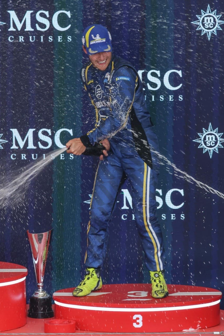 “A corrida foi muito técnica, todos os pilotos estavam muito rápidos, então, foi difícil conseguir ganhar posições. Mesmo assim, alcancei um ótimo resultado. Larguei em oitavo, vim buscando posições, consegui várias ultrapassagens, desviei de pilotos que cometeram erros e cheguei na terceira colocação”, comemora.